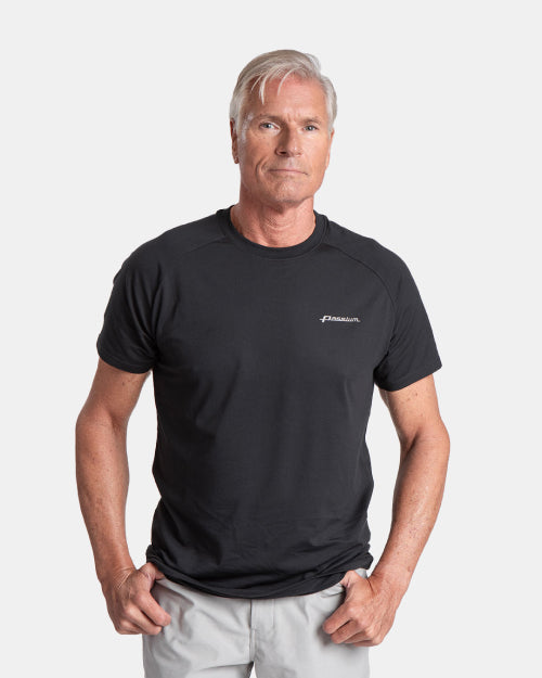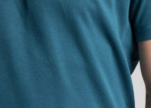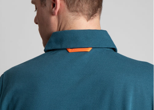 Technical double-knit material with a soft interior provides a comfortable feeling against the skin. The exterior presents a timeless pique—minus the discomfort of traditional knits—that wicks away moisture, provides a high UV protection index, and delivers exceptional breathability