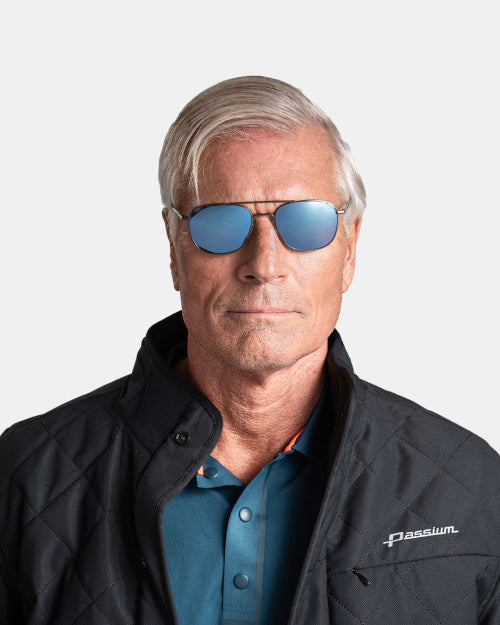 The exterior chest pocket unzips to provide an easy-access sunglass hangar while driving. Custom liner protects the pocket's contents